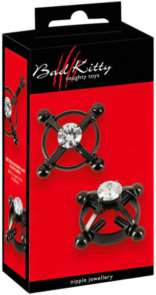 Bad Kitty - csavaros mellbimbó ékszer (strasszos) - fekete (NK05394300000)